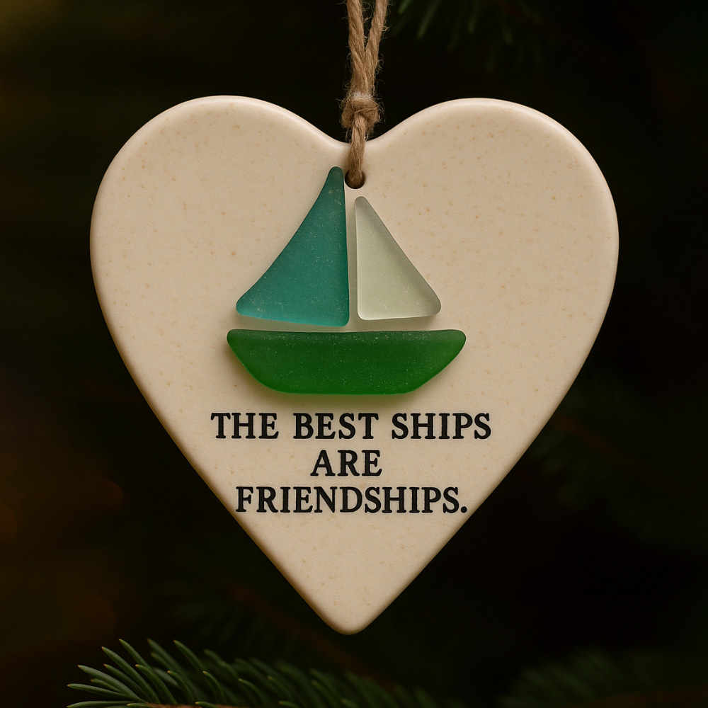🥳Celebrate the beauty of true friendship with this handcrafted heart-shaped ornament, featuring a delicate sea-glass sailboat design.⛵